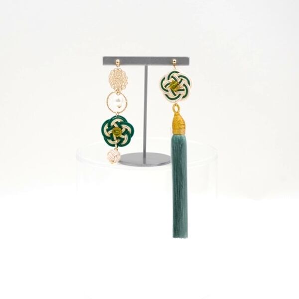 4本結びで組まれた梅結びが華やかなタッセルピアスです。