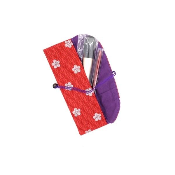 日本伝統文化である畳の縁で作られたポーチと、赤を基調とし洗練されたメイクブラシセットは、大切な方との「ご縁をつむぎあふ」商品です。
