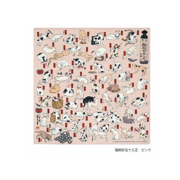 風呂敷 チーフ 隅田川 猫飼好五十三疋 ピンク
