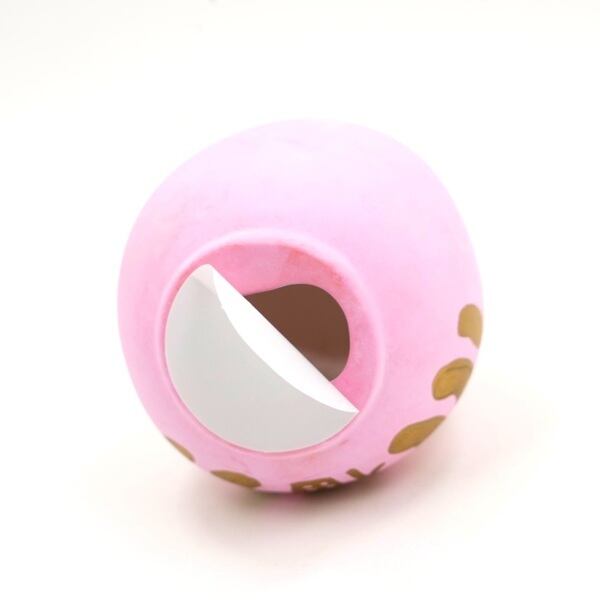 ※貯金箱として使用する際は、付属のシールを底に貼ってお使いください。掲載写真6枚目はシール部分の例のため、別のかたちの貯金箱になります。