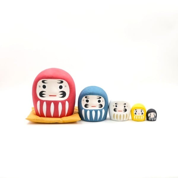 一番大きなだるまは座布団とマグネットでくっつくので、中に小さなだるまを入れた状態でも安心して保管できます。