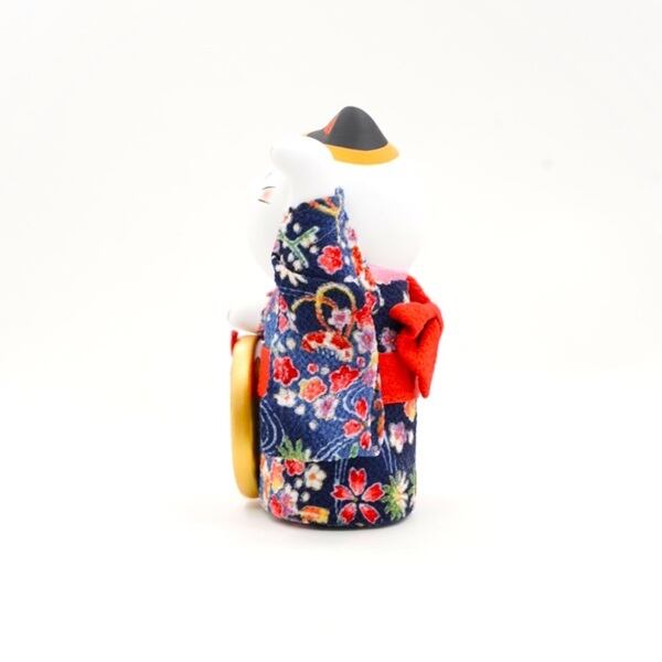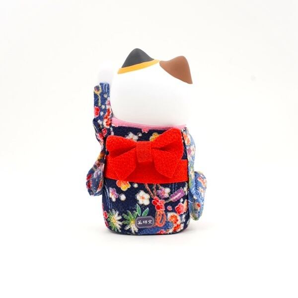 ちりめんの着物を着た招き猫の置物です。