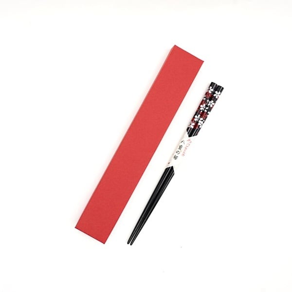 輪島うるし箸 1膳入 八重の桜(黒)