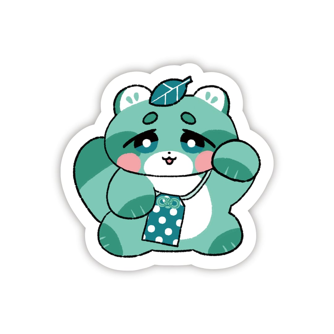 いろいろまねき隊 ダイカットステッカー たぬきグリーン