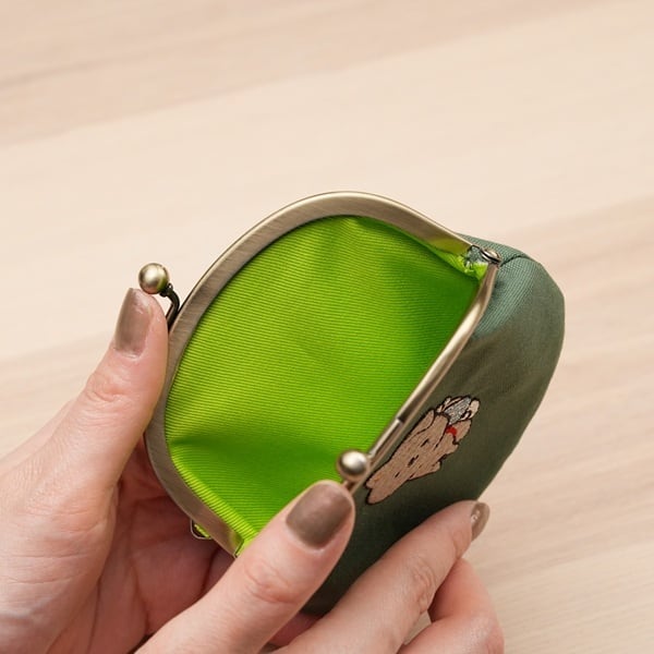 【ゆい吉オリジナル】刺繍がま口 緑
