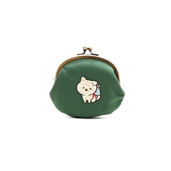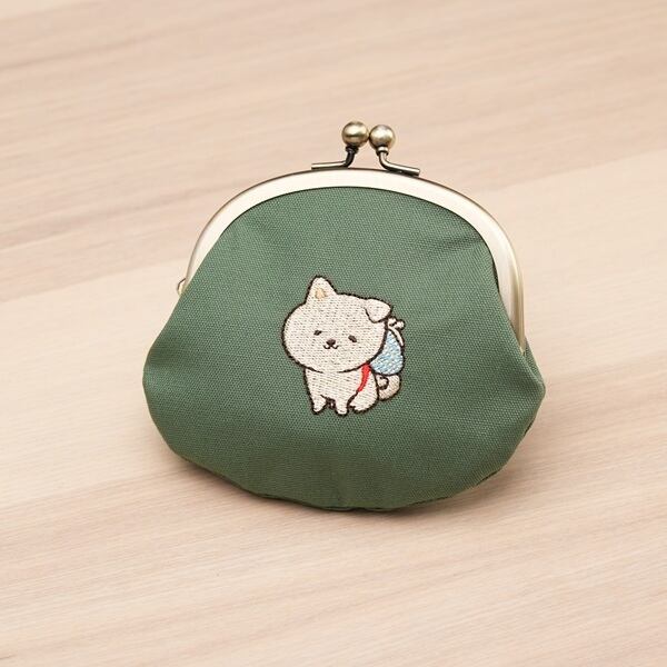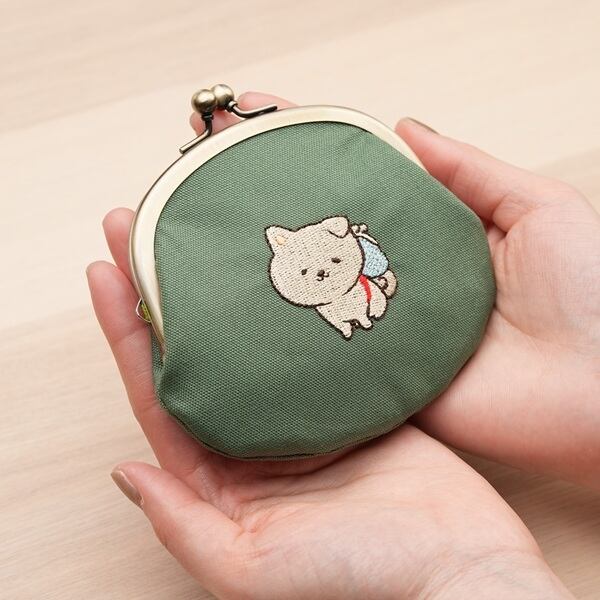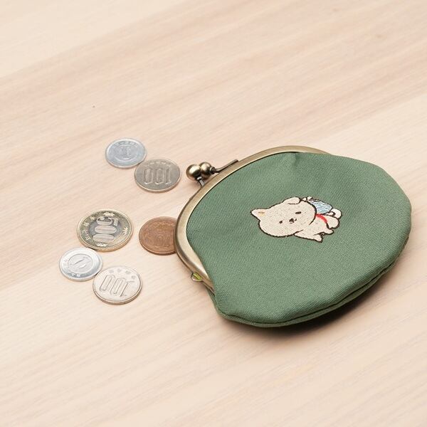 がま口の中央にちょこんとお座りをしたゆい吉が刺繍されていてとってもキュート♪