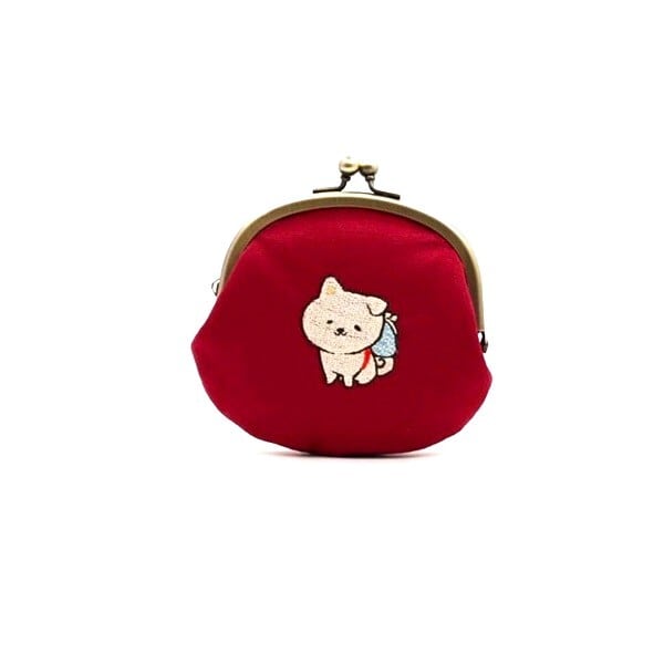 がま口の中央にちょこんとお座りをしたゆい吉が刺繍されていてとってもキュート!