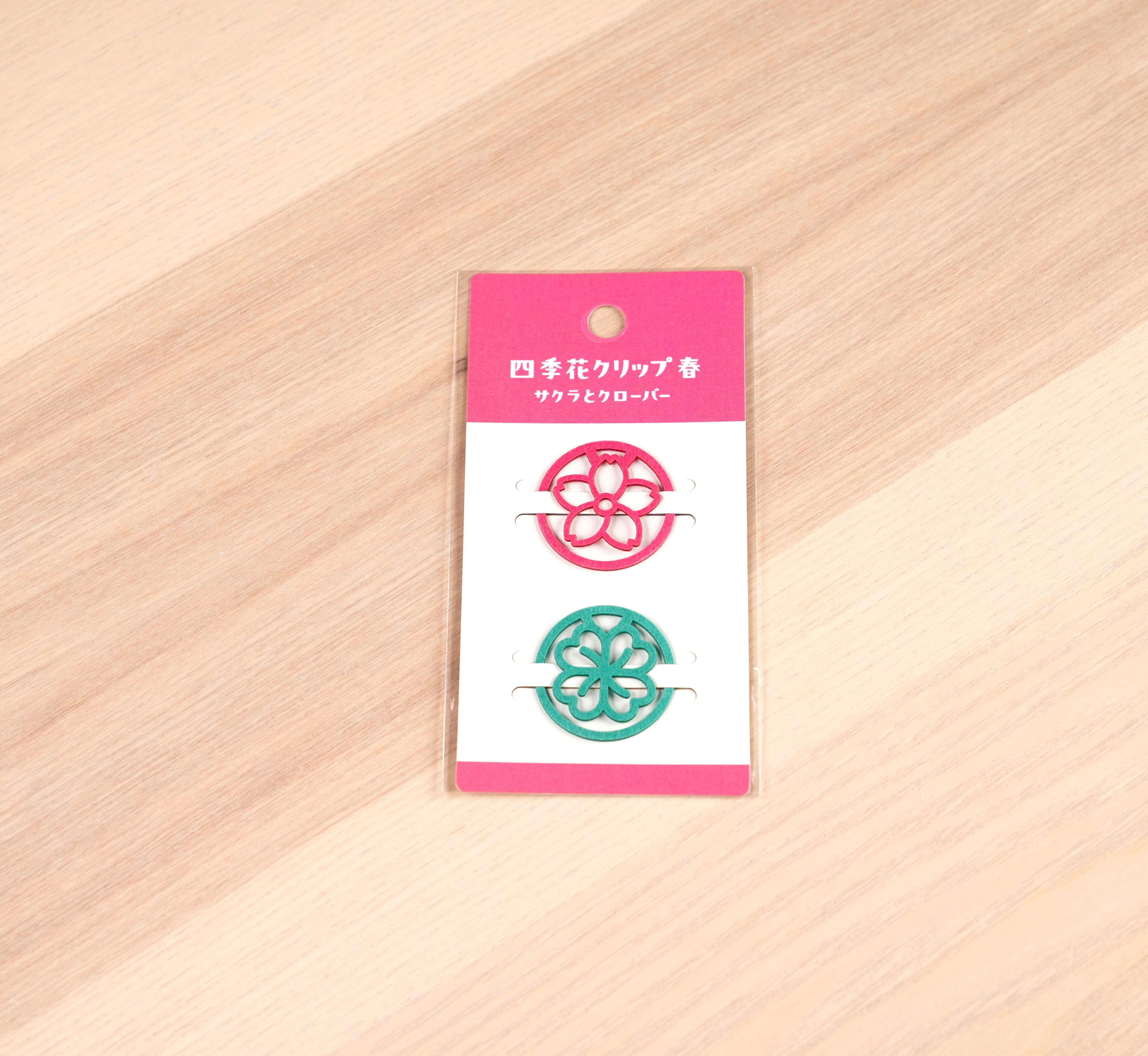 ポスト投函対応可 春夏秋冬 季節とともに移ろう美しい花々 その季節を象徴する花をペーパークリップにしました。 春はサクラとクローバーです。 大切な書類をまとめたり、 ちょっとしたプレゼントやお手紙のアクセントとしていかがでしょうか。 素材は環境にやさしく丈夫なファイバー紙を使用しています。 ◎本体サイズ Φ30mm ◎素材 紙 ◎入数 2個入り(2柄×1個入り)