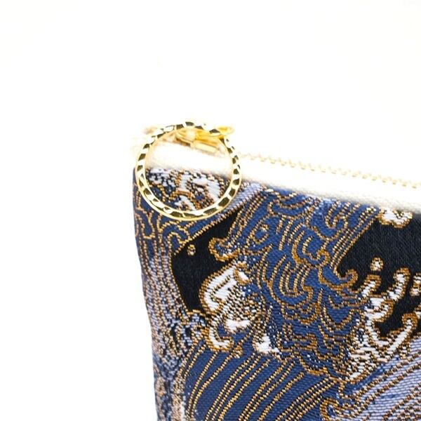 西陣織ポーチL 波ネイビー