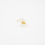 艶のある面を際立たせるため周囲を艶消しに仕上げており、光が入ると柔らかに繊細に輝き、水面からミモザが覗くような上品で凛とした趣のあるリングになっています。