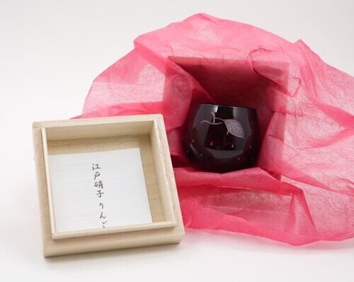 江戸時代からの伝統を受け継ぐ、江戸硝子の技法で実った真っ赤なりんご。